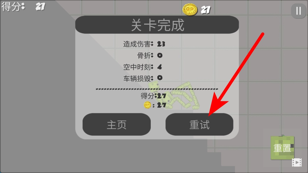 在关卡游玩过程中,要是操作失误需要重新挑战,只需点击重置按钮,就能让火柴人恢复到初始状态,重新开启当前关卡的挑战。