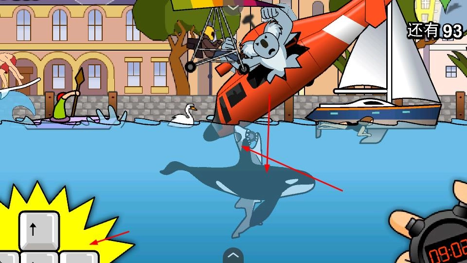 留意水面上的船只、冲浪者之类的目标,抓住合适的时机发起进攻,以此提高分数。