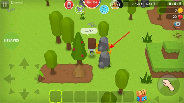 走到场景里的石块区域附近,触发互动操作,就能获取石头资源,这些资源可以用来制作工具或者建造建筑,帮助推进发展进程。