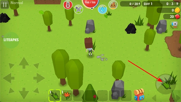 点击右侧的草图标就能收集草资源,草可以用来制作基础物品,是生存必不可少的重要物资。