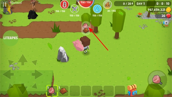 收集肉类资源,既能用来补充生命值,也能制作食物,以此维持角色的生存状态,助力游戏进程推进。