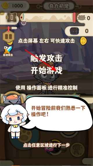 点击“开始游戏”按钮,进入名为“奇力初现”的冒险关卡,以此开启游戏进程,逐步熟悉操作方式与战斗机制。