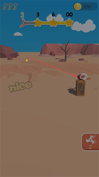 调整飞镖的发射角度与力度,对准木箱进行发射,发射成功后会出现“nice”的提示。