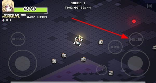 在战斗过程中,玩家若点击MELEE按钮,角色便会发起近战攻击,与周围的敌人展开对抗。