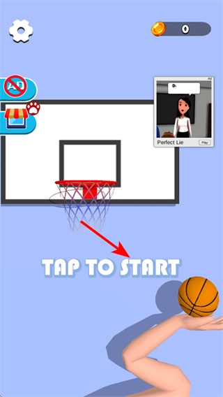 在游戏里,点击“TAP TO START”按钮就能开启篮球挑战,这是进入投篮任务的关键步骤,你可以操控角色去尝试投篮。