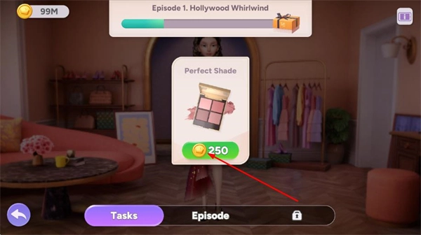 完成剧情阶段后,可选择解锁眉笔等美妆道具或其他时尚物品,以此持续提升角色的时尚度并推进剧情进度。