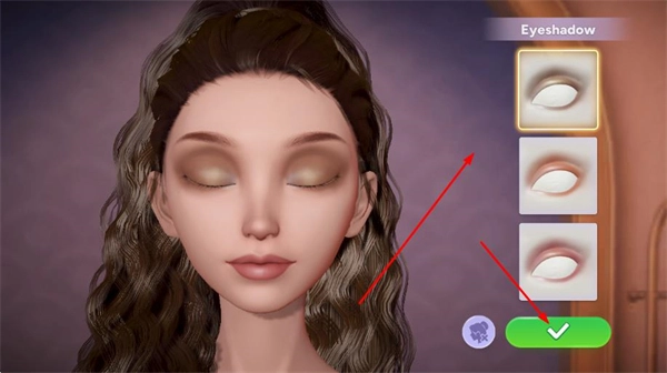 进入美妆界面,挑选喜欢的眼影款式,搭配出合适的妆容后点击确认按钮。