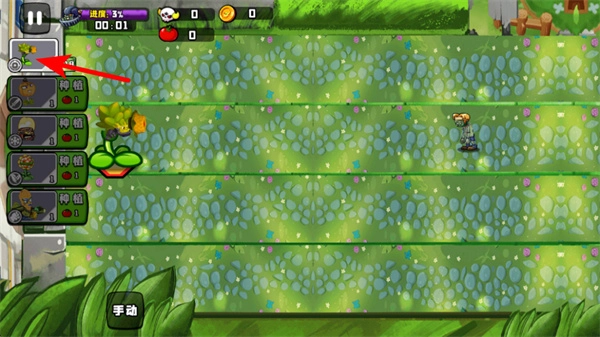 在关卡准备界面挑选合适的植物卡片,把它们拖拽到草坪的空位上完成种植,这是布置防御阵线的基础步骤,选择植物来应对初期敌人。