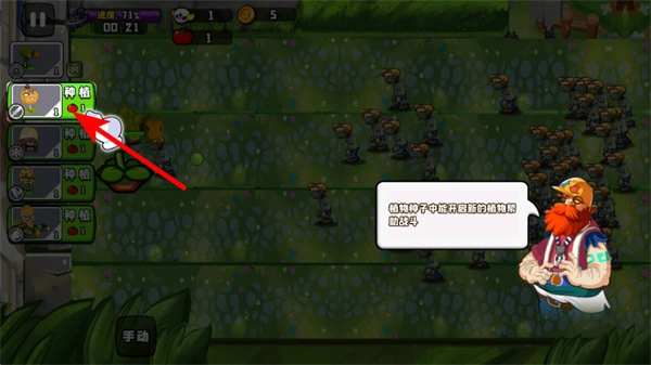 按照界面给出的种植策略,在同一行里把输出类、辅助类这类不同功能的植物组合起来,利用它们的协同作用来提高拦截敌人的效率,同时要注意把控推进的节奏。