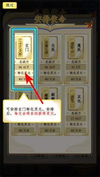 进入安排使命的界面后,先选择对应的势力,这是分配资源产出任务的基础步骤。一旦选定,该势力就会持续产出相应的资源,从而为势力的成长提供助力。