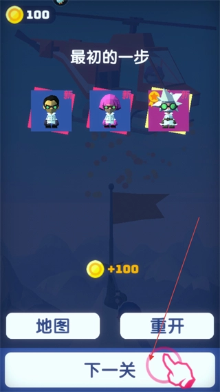 抵达终点后即可领取奖励,点击下一关按钮就能开启后续的冒险关卡。
