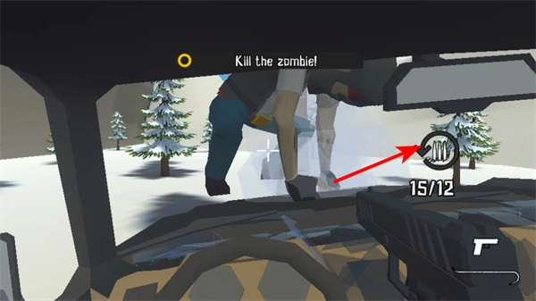 瞄准出现的僵尸并使用枪支攻击,这是应对生存威胁的重要操作,击倒僵尸后可清除当前危险,推进生存场景的探索进度。