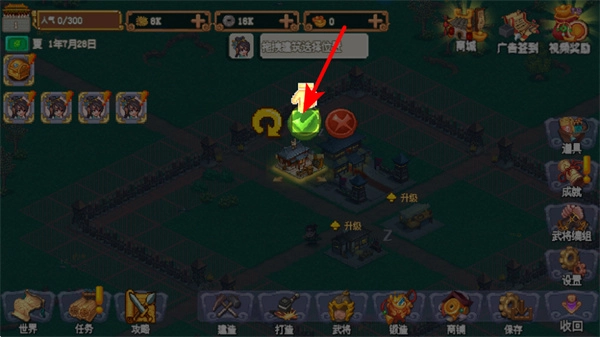建筑建造完成后,点击绿色的确认按钮,这一操作能完成建筑的放置,点击后建筑就会固定在当前区域。