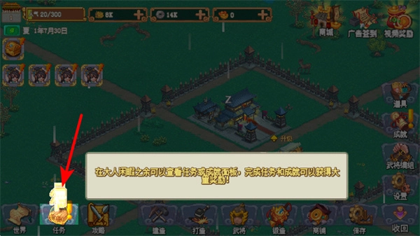 在游戏进行时点击任务按钮,这是查看任务的入口,完成任务能获得大量奖励,助力推进游戏进程。