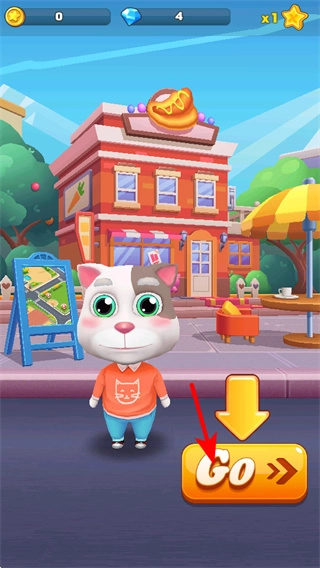 进入游戏界面后,点击GO按钮,这是开启跑酷关卡的关键操作,准确点击才能进入游戏的跑酷流程。