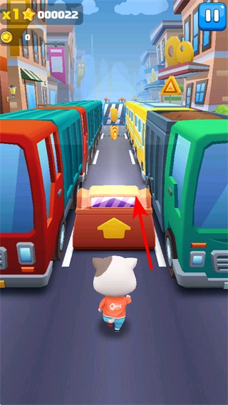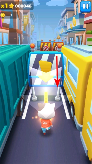 当道路上出现阻挡物时,按照箭头指示的空旷区域移动,以此避开碰撞,这是保持跑酷节奏的技巧,只需调整位置就行。