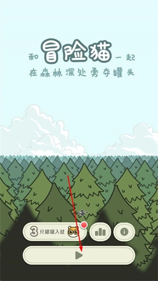 进入游戏主界面后,会看到3只猫猫已入驻的初始提示,点击底部的启动按钮就能开启森林冒险之旅。