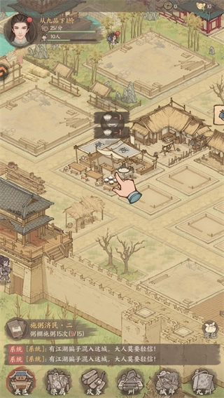 按照界面给出的提示,在场景里找到粥棚所在的位置,点击这个粥棚,就能完成这次给流民施粥的操作,从而推动任务往前进行。