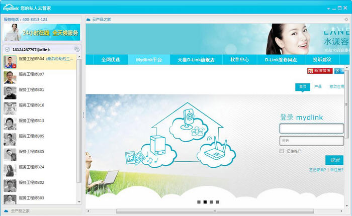 D-Link在线客服软件最大的亮点就在于其“7X24小时”的全天候的在线服务,用户无论在任何时间,都可以随时登录服务界面,只需向工程师发送设定要求,工程师便会远程为用户进行全套的系统设定工作。经过远程设定的云监控设备,无需用户再进行任何操作就可以直接使用。而如果用户在使用过程中有任何问题,都可以直接与工程师对话,予以帮助解决。真正做到了省时、省心、安心、放心。
