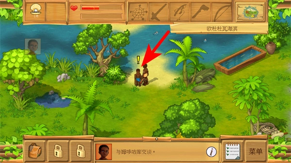 进入荒岛场景后,点击箭头所指向的角色,就能触发和该角色的互动,这是推动任务进展的关键操作,按照提示进行互动就可以了。