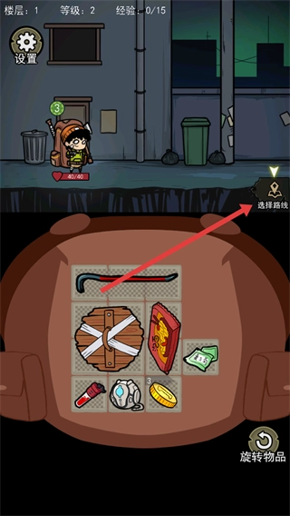 进入背包幸存者游戏界面,点击右侧选择路线按钮。