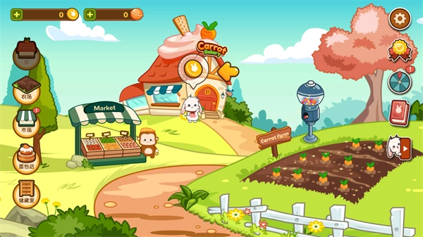 进入游戏主界面后,能看到农场等功能建筑,按照洛普比的请求进行互动,就能开启CarrotBakery的面包店经营流程。