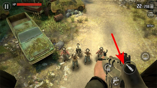 进入游戏后,点击箭头所指引的道具按钮,这是切换武器弹药的关键步骤,点击之后就能为武器补充相应的弹药,以便应对敌人。