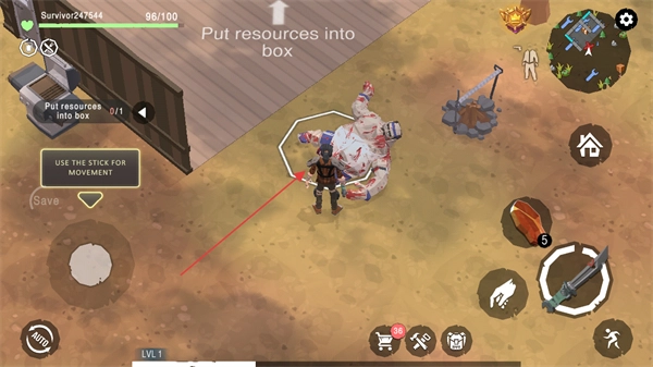 按照提示“Put resources into box”,把资源收集起来,准备放进箱子里。