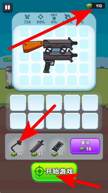 使用金币挑选新的枪械部件进行组装,点击开始按钮后,即可进入下一轮对战。