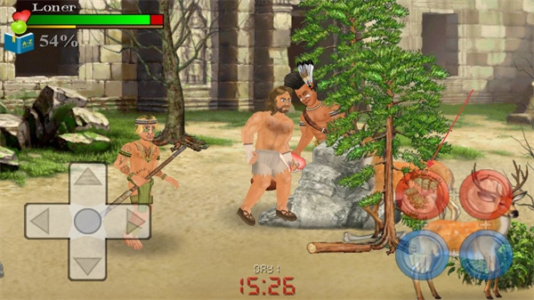 当发现木材、猎物这类物资时,点击对应的功能按钮就能获取生存所需的材料;另外,还能和场景里的其他角色互动,以此推动生存的进展。
