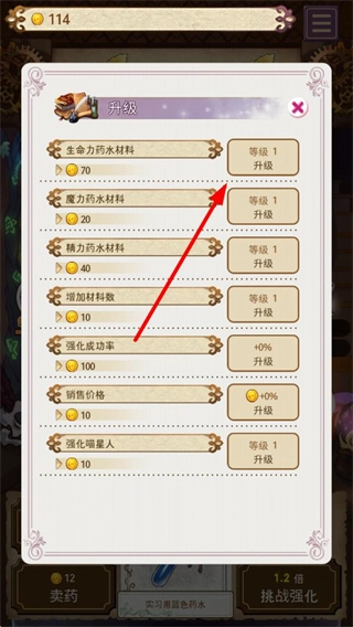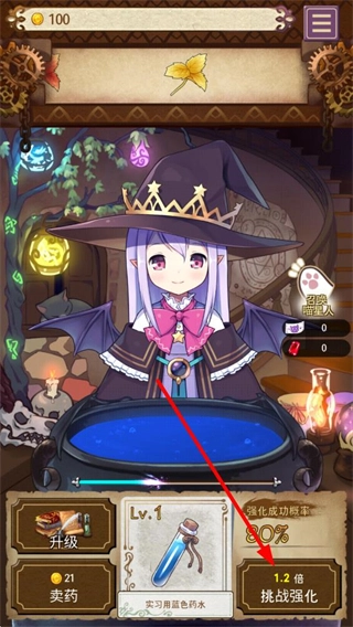 支持对药水进行强化升级,成功后可大幅提升售卖价格,虽有失败概率,但失败时角色的可爱反应也为体验增添了额外趣味。