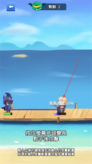 在战斗阶段,根据提示长按角色执行攻击动作,尽可能让斧头和敌人的位置重叠以提升伤害输出。