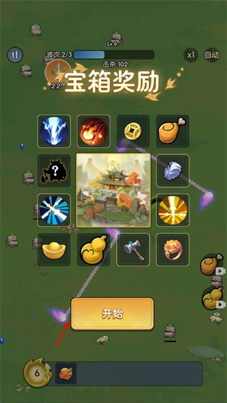 进入战斗场景后,角色会自动攻击敌方单位,击败敌人后可积累击杀数与金币,等级也会随之提升,从而解锁更强的能力。
