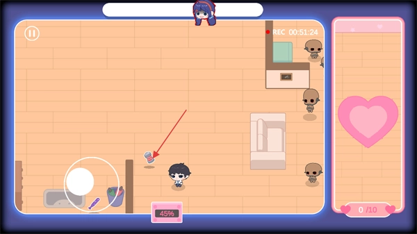 通过操控角色在房间里移动,来推动救援进度,界面上会实时显示进度的百分比数值。
