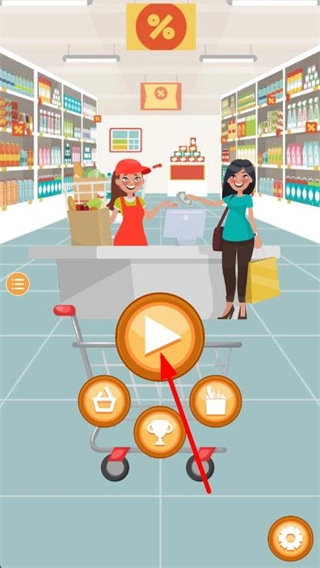 在游戏主界面找到开始按钮并点击,随后进入超市收银的场景,做好接待顾客的准备。