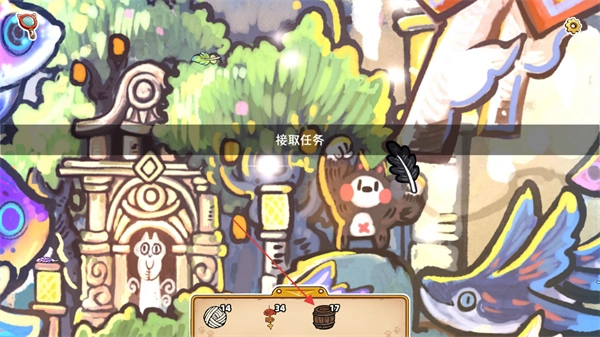 接取任务后,界面会弹出接取成功的提示,与此同时,下方的道具栏里会新出现木桶道具,接下来需要在地图里找到这个木桶,才能继续推进后续的任务步骤。