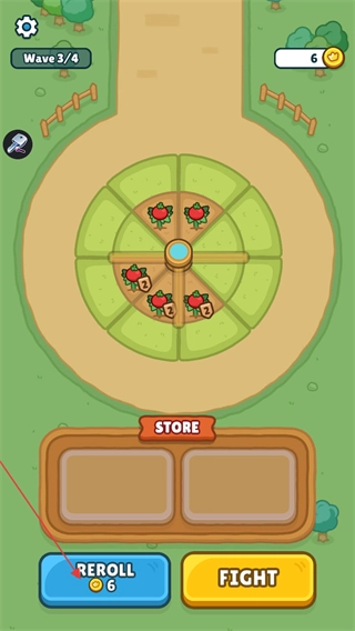 点击消耗6货币的REROLL按钮,可刷新STORE内的物品,刷新后商店将重新生成新的植物。