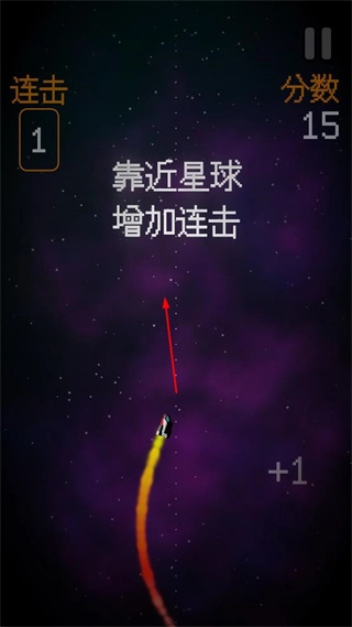 操控飞船向星球靠近,以此提升连击数,与此同时要留意界面上显示的连击情况和分数变动,从而不断推动游戏进程。