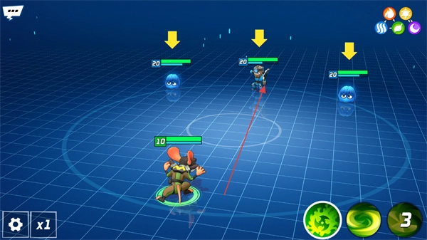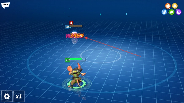 控制角色移动,对准上方显示20数值的目标,准备施展技能发起攻击。