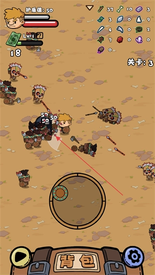 在第三关的场景里,控制角色对敌方单位发起攻击,以此来减少它们的血量。