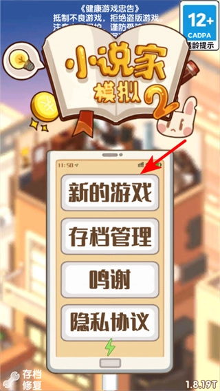 进入游戏界面后,点击“新的游戏”按钮,这是开启小说家模拟的关键操作,只有准确点击才能进入游戏流程。
