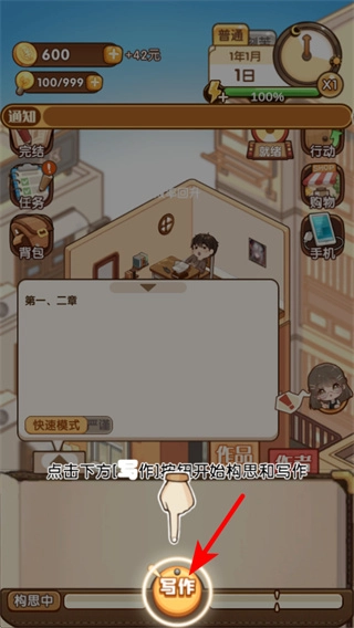这款游戏采用非传统的放置挂机模式,通关是核心目标,玩家的每一步操作都具有实际价值。游戏过程中,需要合理规划资金分配(比如优先赚取房租所需的费用),同时通过优化题材组合来提高作品的评分。