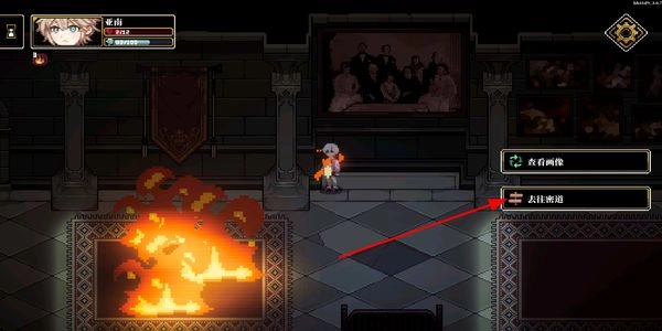 和场景里的选项进行互动,挑选前往密道的指令,进入新的探索区域,持续推动游戏的剧情与探索进程。