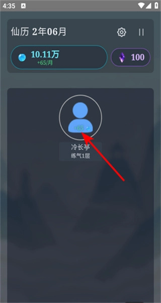 在主界面点击红色箭头所指的角色头像,就能打开角色详情界面,查看当前的修行境界和属性状态。