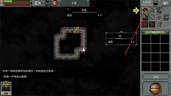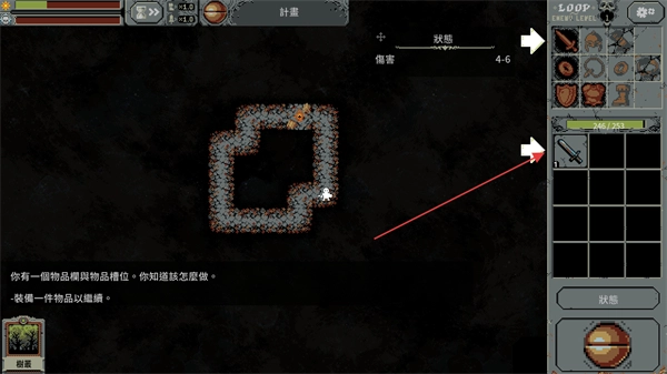拿到物品后,点击右侧的剑形道具,准备将其装备起来,这样就能提升自身属性了。