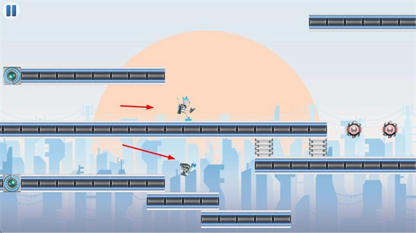 进入游戏界面后,你需要操控机甲在多层平台之间移动,避开各种障碍以推进游戏进程。