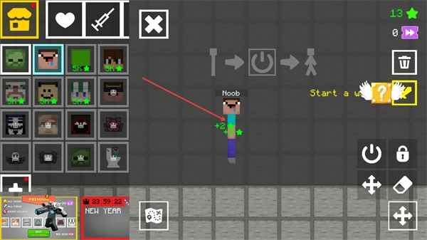 选择Noob角色后,把他放到游乐园地图里,另外还能挑选其他角色的相关玩法来推动游戏进程。