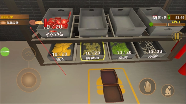 从食材区取来西红柿这类制作基础汉堡需要的食材,接下来就可以着手准备餐品制作了。
