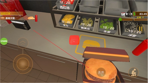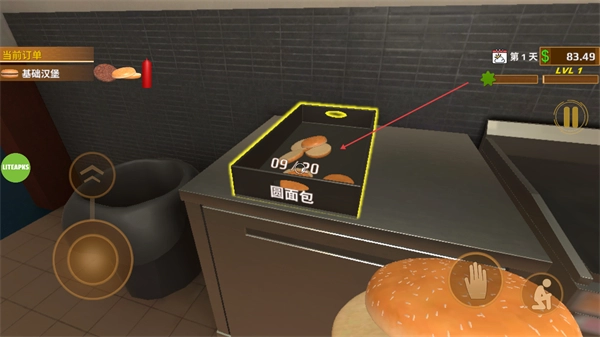 走到操作台那里,拿取面包当作基础汉堡的底层用料,推进制作进程。