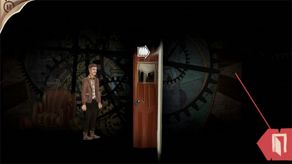 完成前一场景的互动后,角色会移动到这个位置。接下来,你需要继续操控左侧的方向键来控制角色移动,同时留意右侧的门,为后续的互动步骤做好准备。